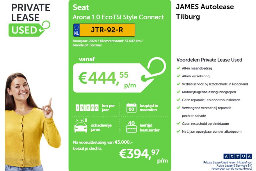 Leaseprijs: € 394 p/m (private lease, 60 maanden, 10.000 km); informeer naar de mogelijkheden en voorwaardenProductveiligheid